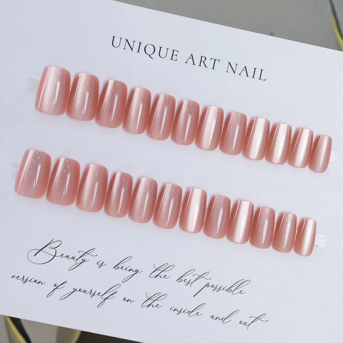 24pcs/30pcs short square ballet fake nails for women cat eyes glitter green blue purple pink shinny nail tips press on nail art - Hands of Hope